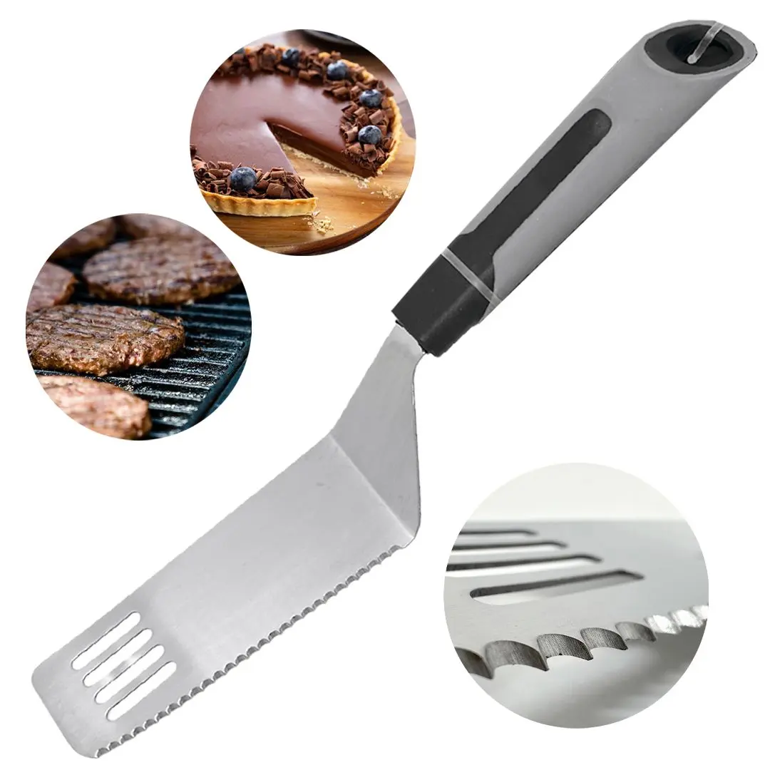 Espatula Multiuso:Sirve para cortar y servir al mismo tiempo.Largo total: 29cmMaterial: Metal - plastico - silicona