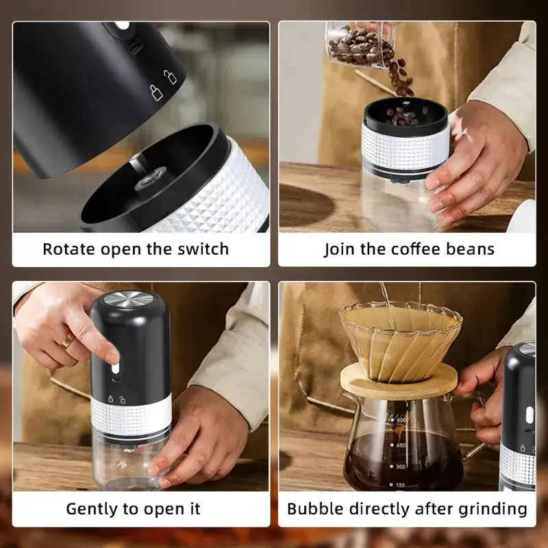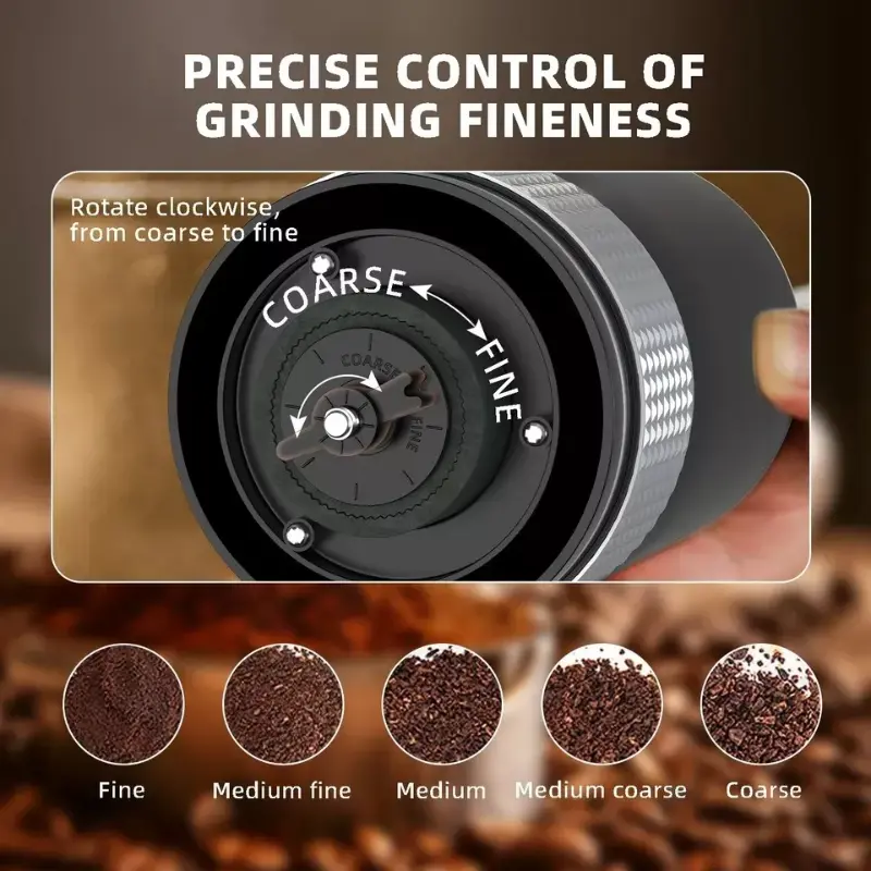 Descubre la excelencia del molinillo de café portátil y recargable vía USB.