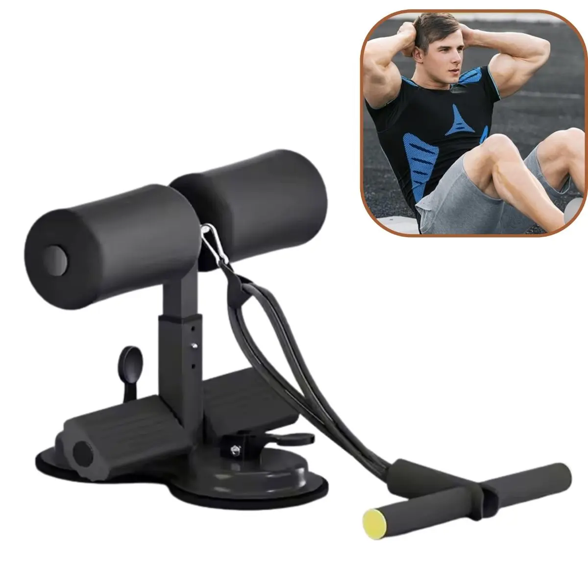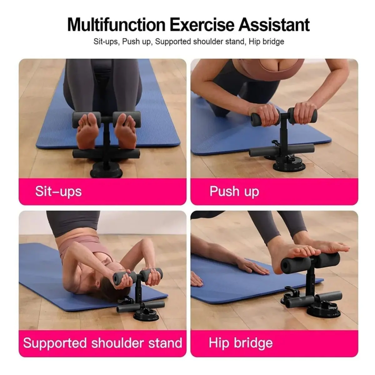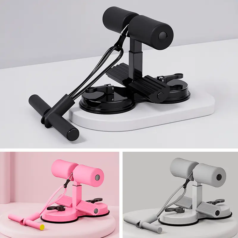 Soporte para ejercicio abdominal de 2 niveles Doble ventosa para mayor succión al piso + Grip con banda elástica Colores gris, negro y rosa Se envía surtido