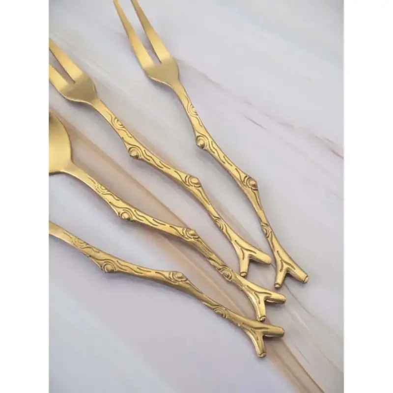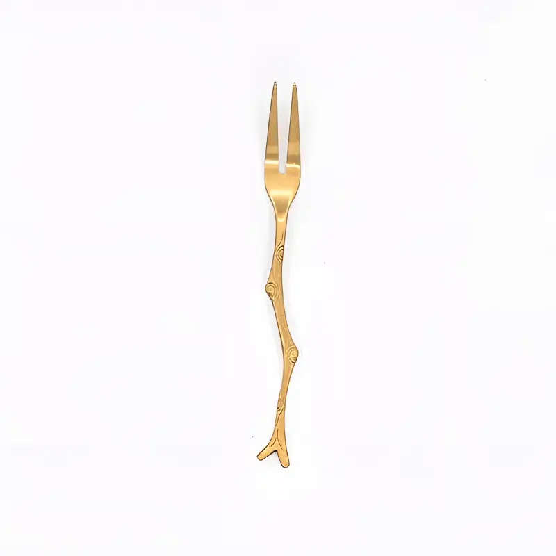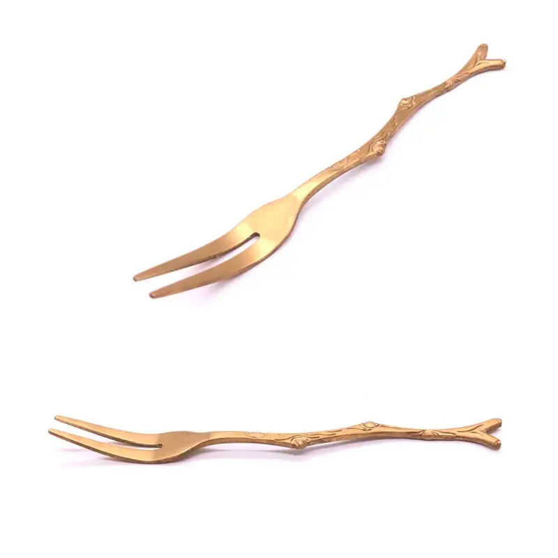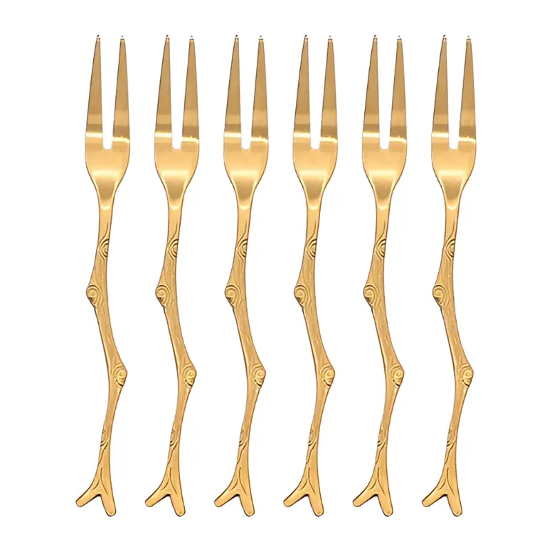 Herramienta útil: este tenedor de Copetin, postre de acero inoxidable es una buena opción para comer postres, bocadillos, frutas, etc.Especificación:Material: Acero inoxidable.Color: Oro.Tamaño: Aprox. 12 x 1 cmPack x6 unidades.